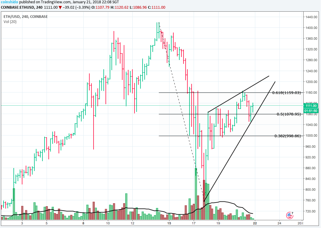 The price performance of Ethereum and Bitcoin does have leading impact on overall sentiment of other cryptocoins and tokens. As such we will be publishing weekly ETH and BTC to help our readers identify buying and selling opportunities in coming days.